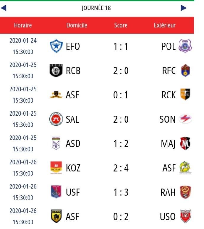 Résultats et programmes des matchs de la semaine